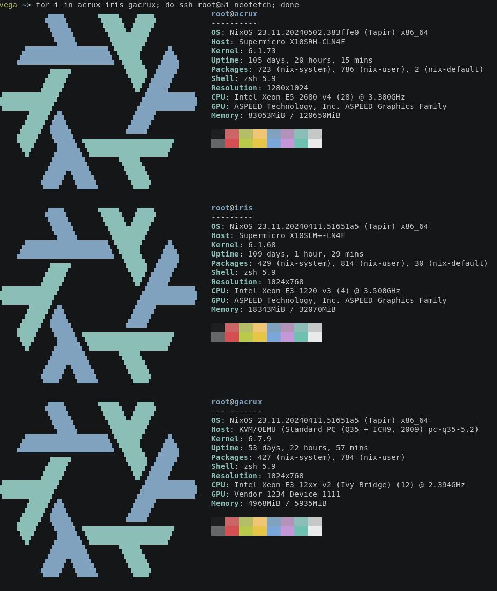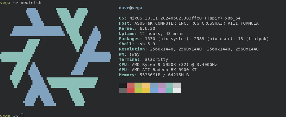 first, my main desktop telvanni running nixOS, which is my most up to date: